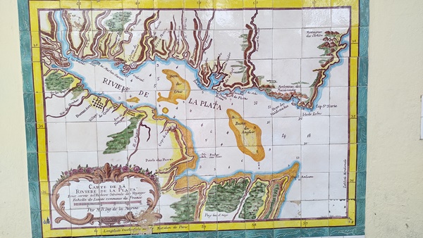 A tile map of the La Plata River that separates Buenos Aires, Argentina and Montevideo, Uruguay. Old and decorative.