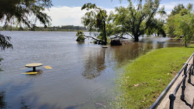 We headed back towards Argentina, hoping the roads and bridges weren't going to be washed out. This riverfront park in Mercedes was still under water from the previous week's deluges. We'd been forced to move at 10PM one night when biblical rains caused the streets and rivers to flood all around us. We had to drive through about a foot of water in the dark, in driving rain in an unfamiliar town where we'd found the campground closed and the bridge next to it washed away. We had to dodge the manhole covers that were spouting pressurized water up through their grates, making them look like white waffles floating above the street. It went from dry to flooded in less than two hours!