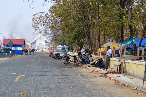 Before we got to Siem Reap, we had to cross into Cambodia at the border with Laos. The brush here was on fire and the smoke was rolling about. What a welcome to Cambodia!