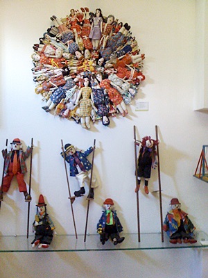 Puppets and stuffed cloth dolls in a circle were a colorful sight in one room of the gallery.