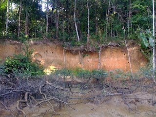 One of the shallow spots with a wall of soil along the bank. The birds and/or animals burrow holes in the bank. It was rare to see ground higher than the creek water here.