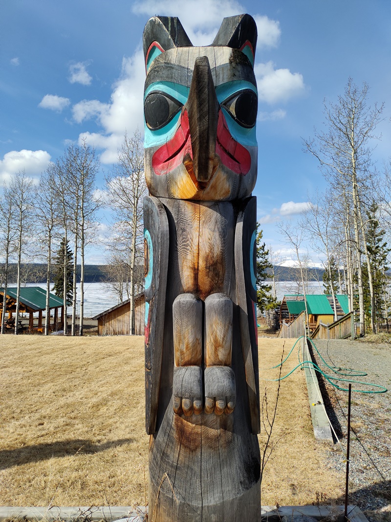 A famous carver, Keith Wolf Smarch carved thes large totems to represent the different clans. This one is the Raven.