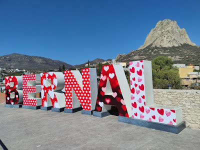 Refreshed, we headed further into the mountains, up and over some pretty steep hills and curvy roads up to one of the world's largest monoliths, the Pena de Bernal. Our view of it as we drove into town.